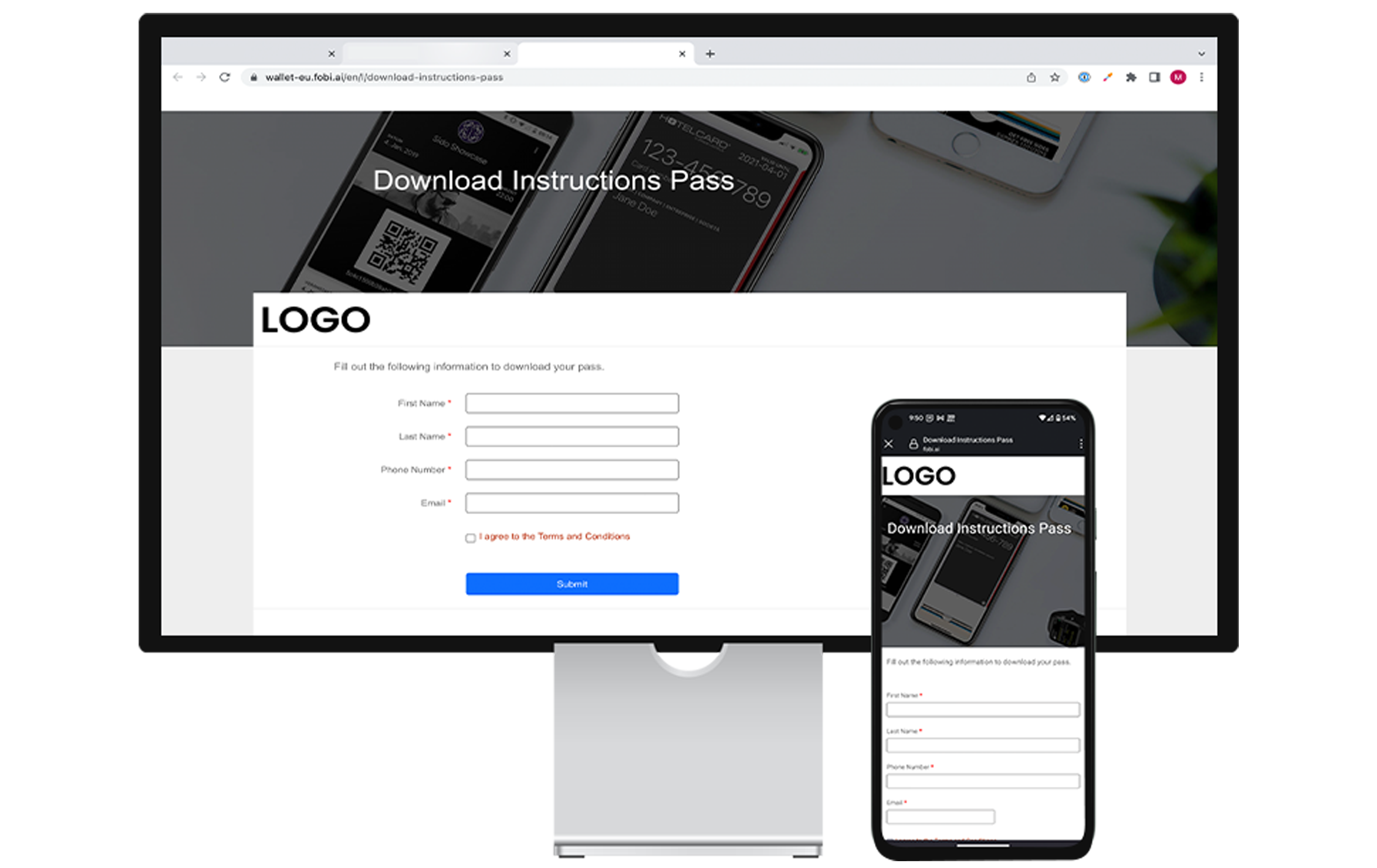 Click the link you received or scan the QR code, to access the onboarding page. Fill out your information and press submit.